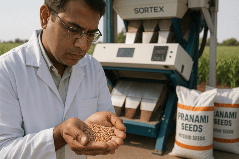 At Parnami Seeds, we grow quality at our R&D farms, clean with advanced Sortex technology, pack in attractive protective packaging, and deliver swiftly – ready for farmers to sow and succeed.